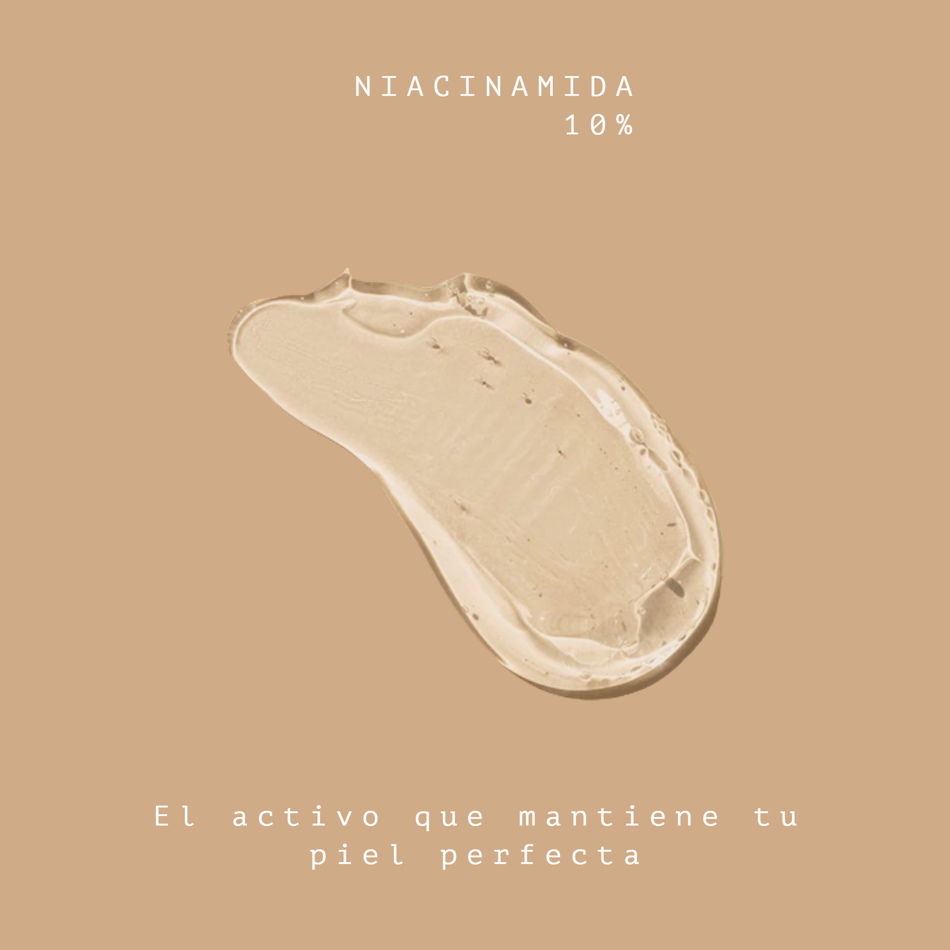 Niacinamida, Vitamina E, Hidrolato de rosas.